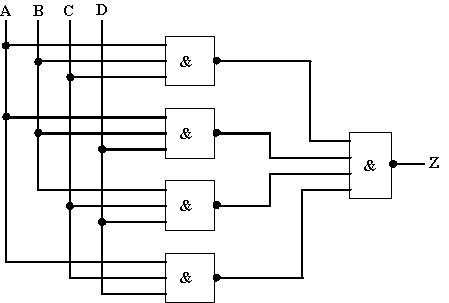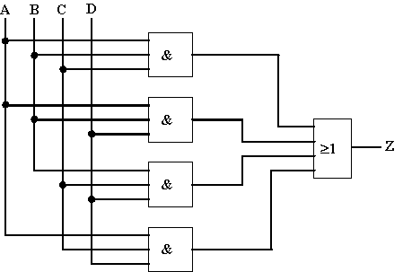 Daraus ergibt sich folgendes Schaltnetz aus Grundfunktionen